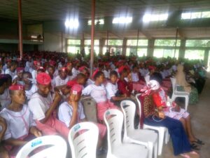 Miss Precious, led the team to distributed the sanitary pads, toothpastes, detergents to the girls in mount Carmel secondary school in Ikare Akoko.